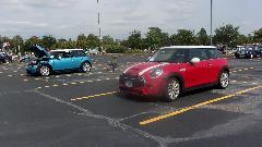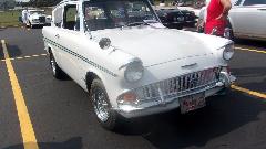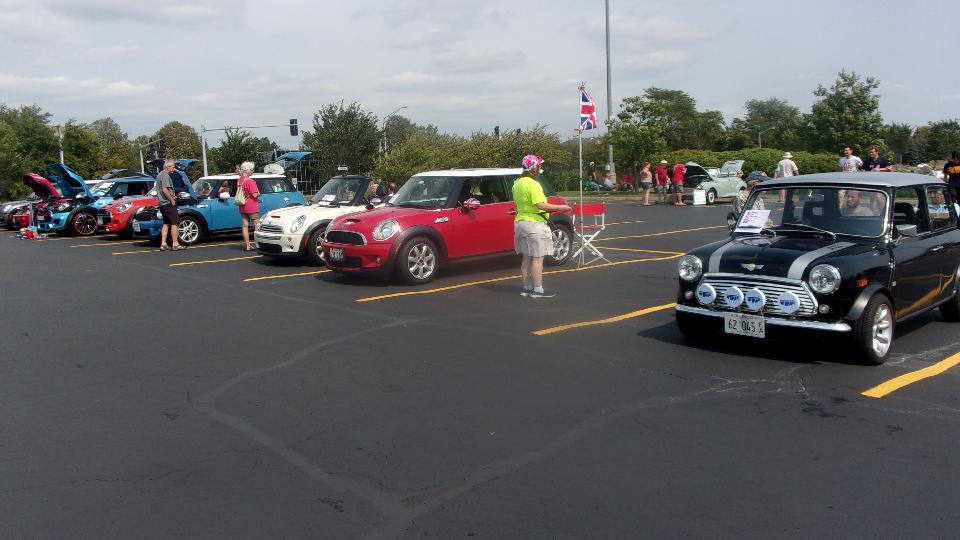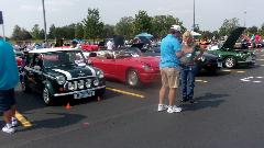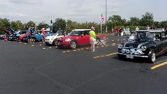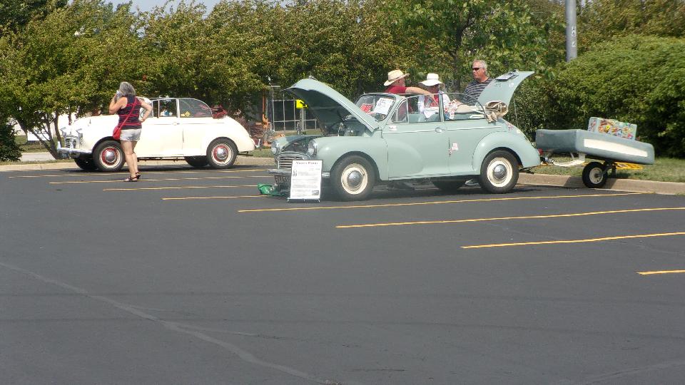 Just one vintage Mini decked out in rally formal wear, and several modern Mini. Two Morris Minor, both convertible, one towing the vintage caster wheel trailer. Those caster trailers would likely be illegal for production today, as they tent to have the tail wagging the dog.