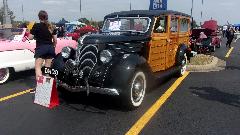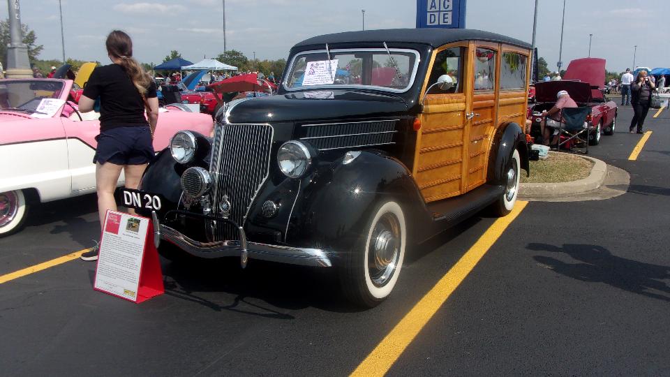 Next to the pink and white Nash Metropolitan was a 1936 Ford V8 Woody Wagon (raising a few eyebrows). Yes we know it's an American made car, but it was first purchased in England, changed hands a few times going through Holland where it began restoration, then moved to America in 1970 where it sat in a warehouse until 2007 when the restoration resumed. Since it spent more of its life driving in Europe than it has been driving in America, we have a soft spot for its British heritage.