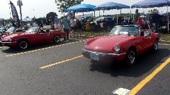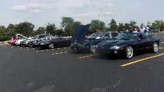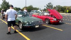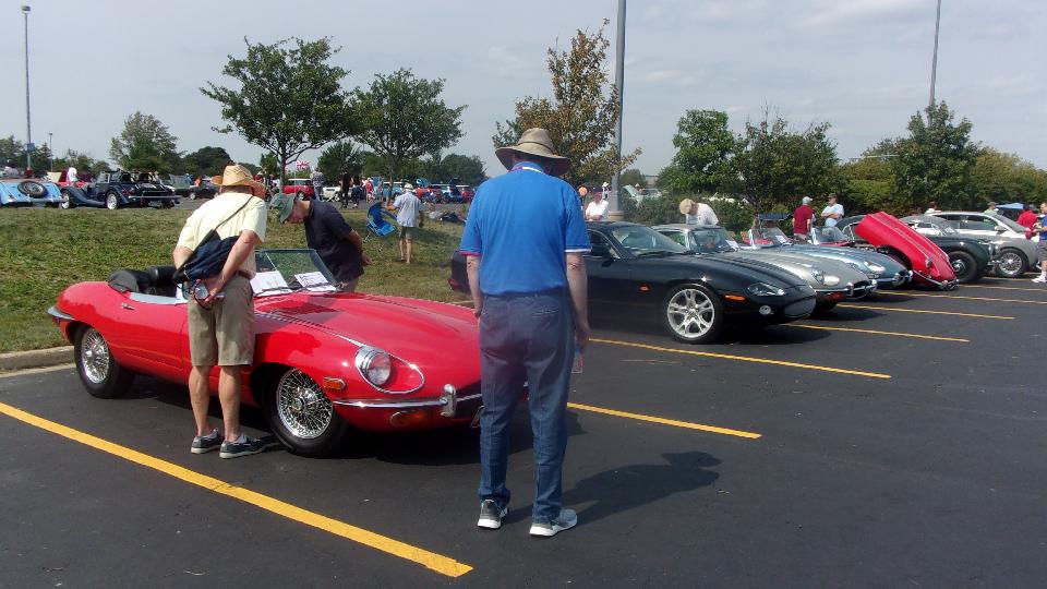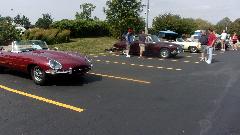 Some Jaguar XK8, followed by a bunch of Jaguar E-Type (looking both sides of the isle to catch them all).
