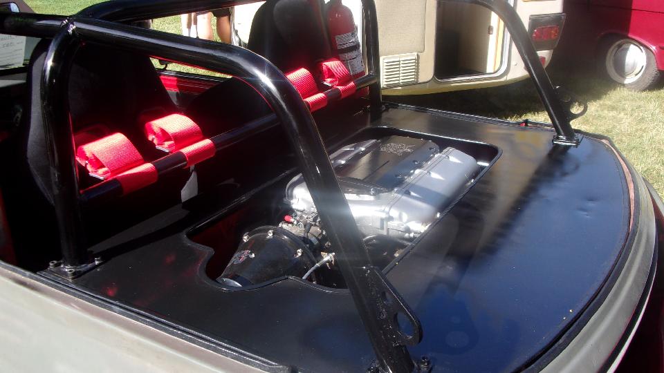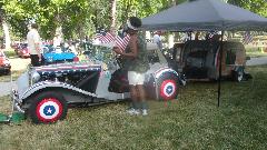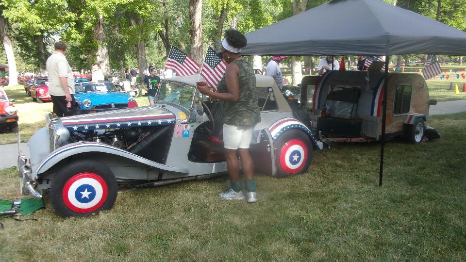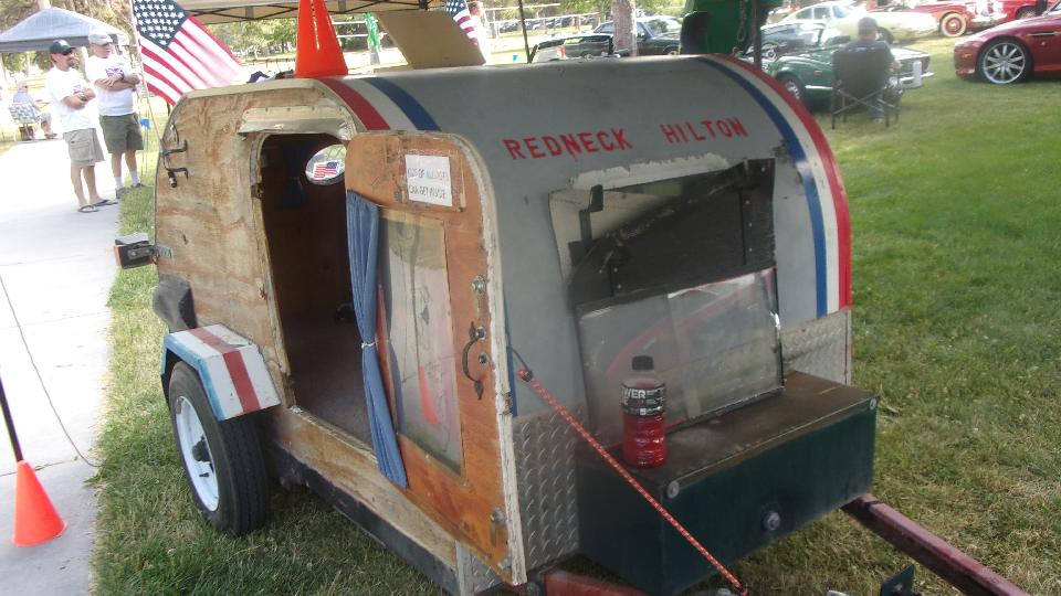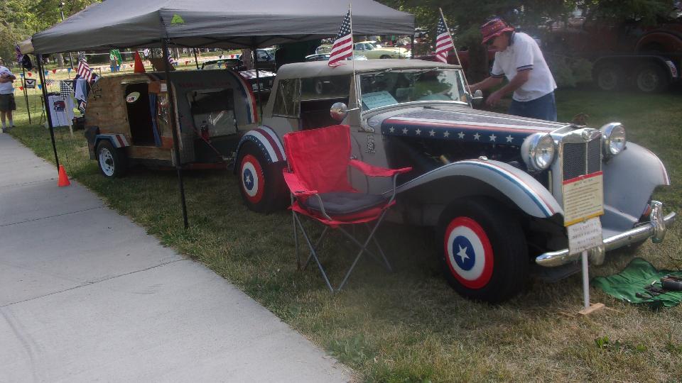 There was a very patriotic MG TD with MGB 1800 engine, overdrive gearbox, front disc brakes, and a tag-along "Redneck Hilton" sleeper trailer.