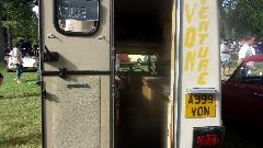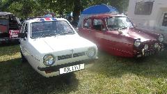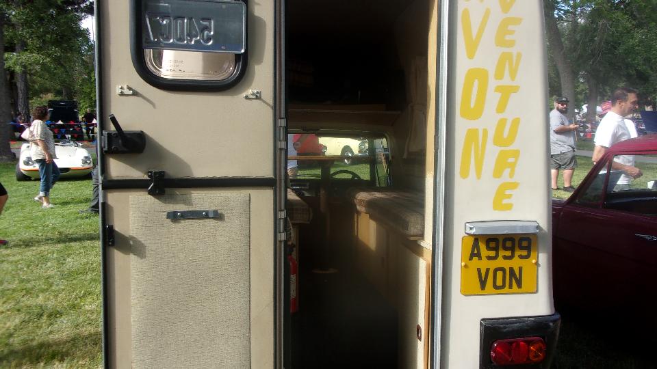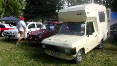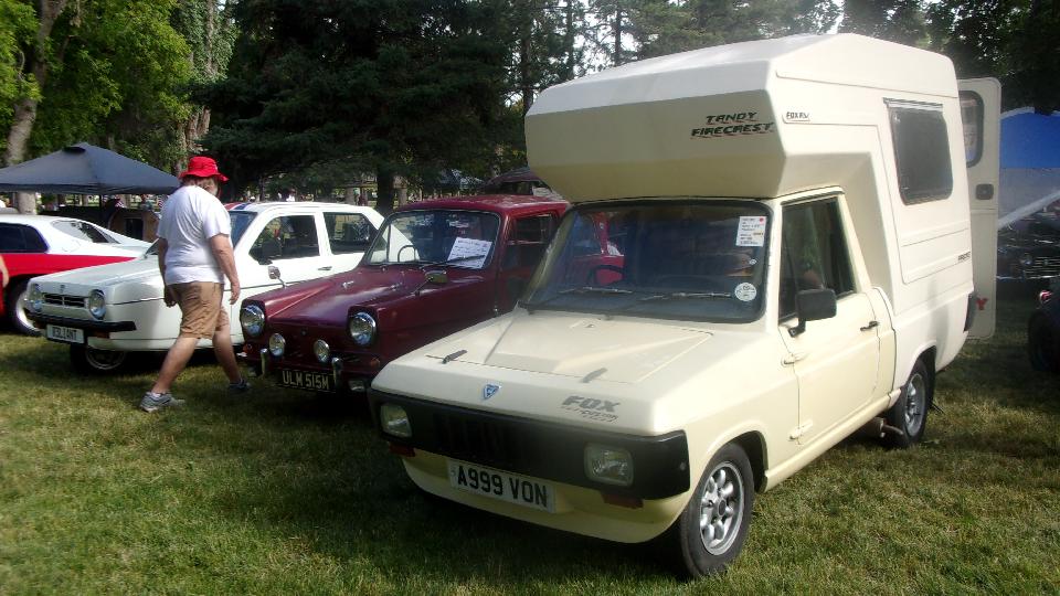 Sitting next to the big Jaguar coupe were two Reliant Robin three wheelers. And next to those another Reliant, four-wheeler this time. It is motor home conversion, and as small as it is, it actually works.