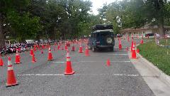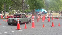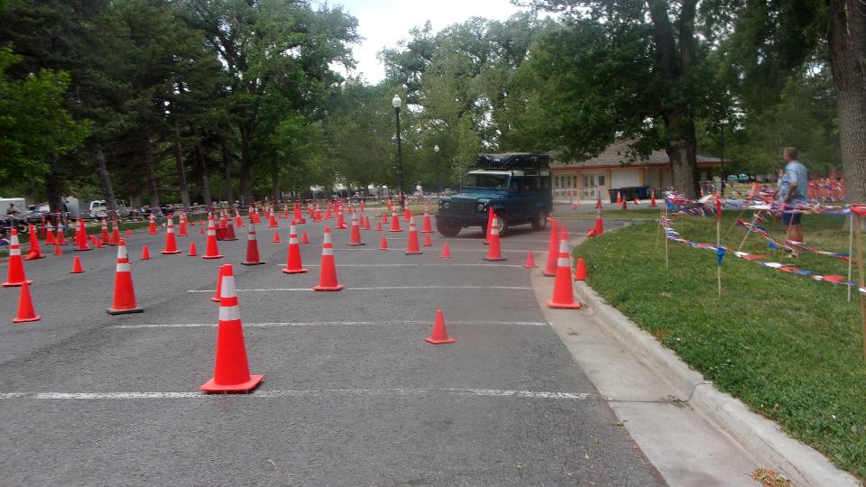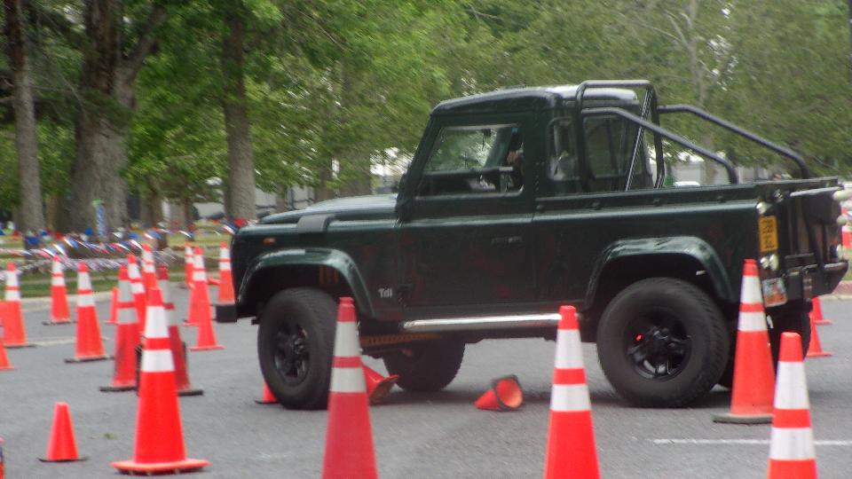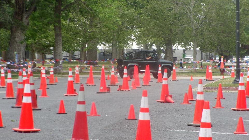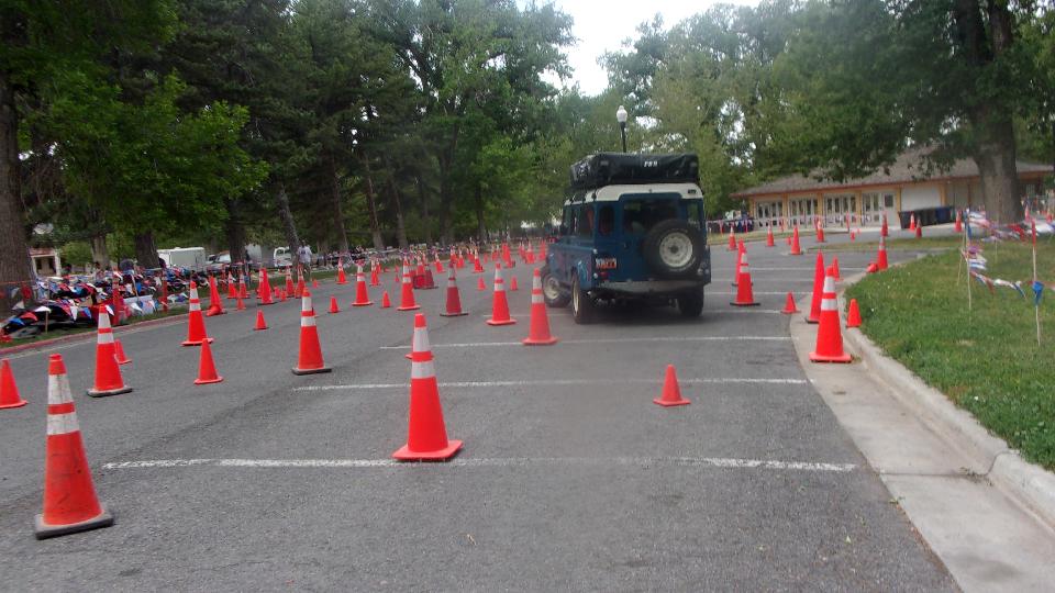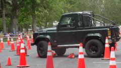 Seems like the long wheelbase Land Rover didn't have a chance, and it was true. He took several runs on the course with different passengers, crushing cones on every run, and having to back up at least once each lap in a very tight switch-back turn.