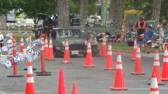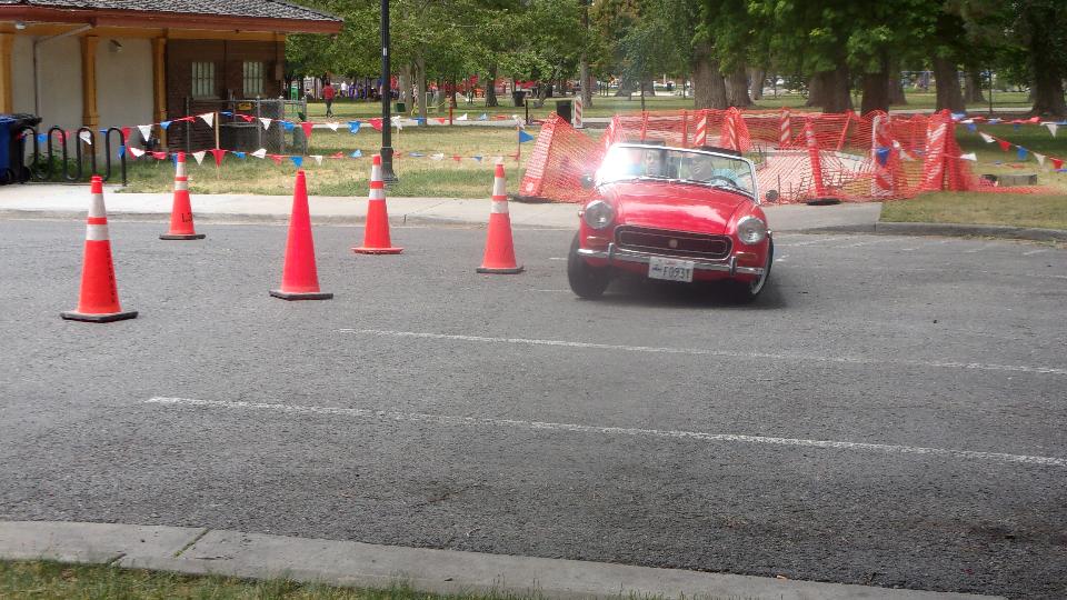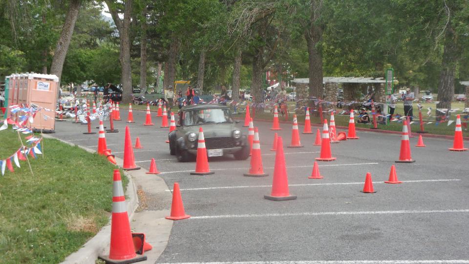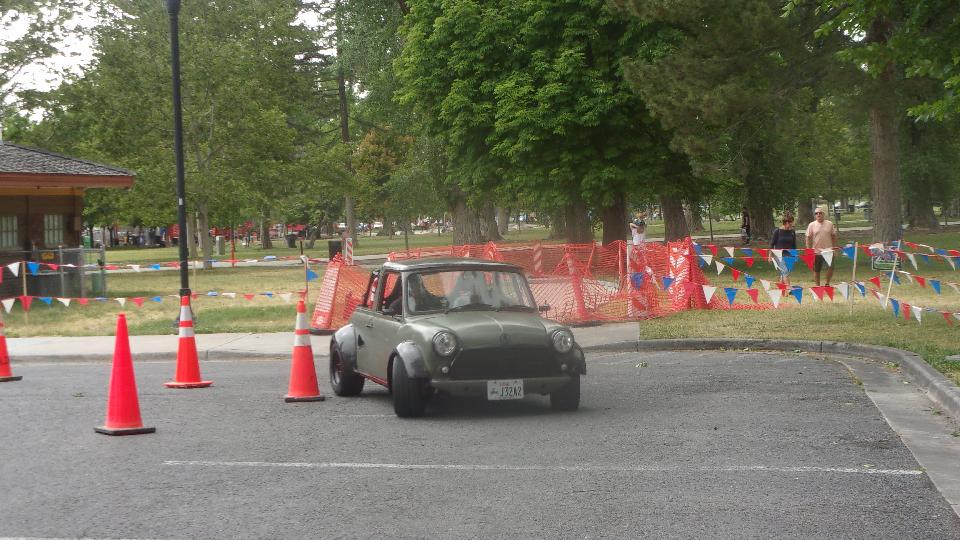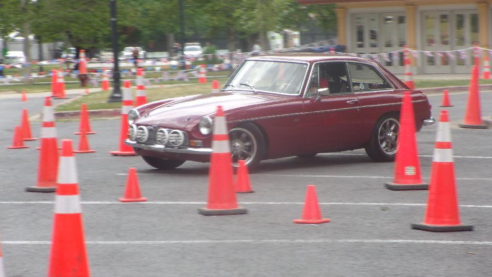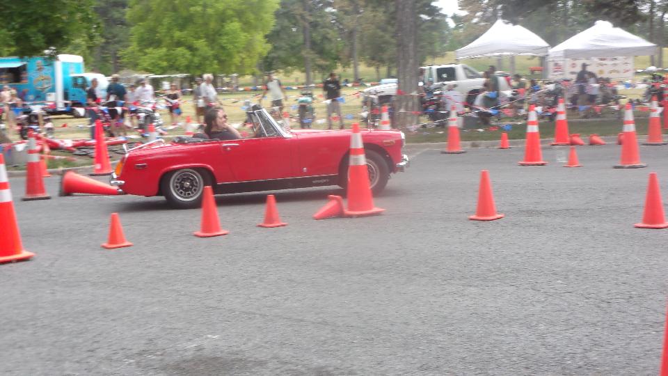 The Triumph Spitfire took one lap, got lost twice on the way around, and gave it up for a lost cause. The new mini did a pretty good job of it, looking like he was having fun, and not hitting any cones.