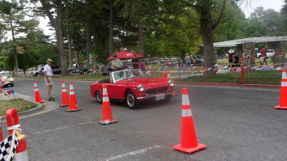 Then the hero of the day appeared to redeem everyone's social values. The MG Midget was built for this kind of course, and maybe the course was also laid out just for this kind of car. He made it look easy (almost), plenty of engine noise and tire squealing, a little throttle steering out of sharp turns, and easy single pass around the zero radius hairpin. And he came back a few more times, just to show everyone how it should be done.