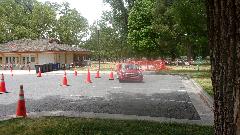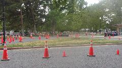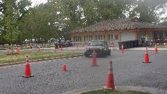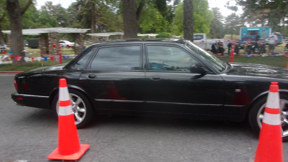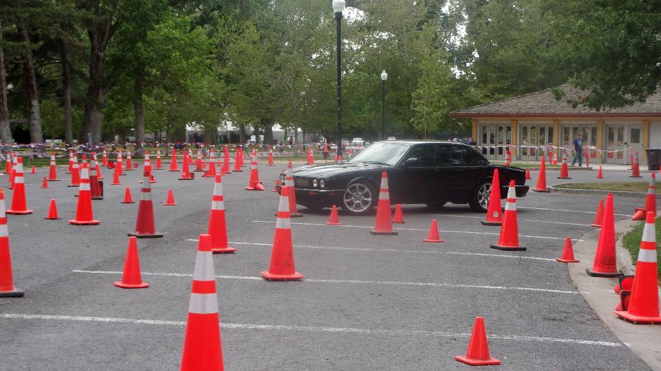 Okay, don't laugh to hard, no way the big Jaguar was going to do this. Aside from several squashed apex cones, he had to back up twice to get through the hairpin turn