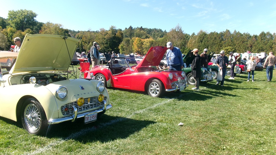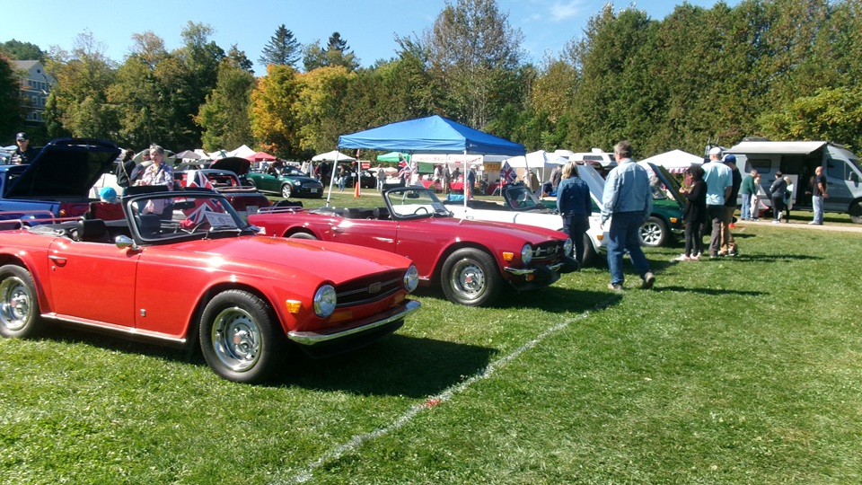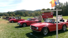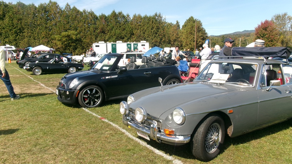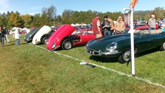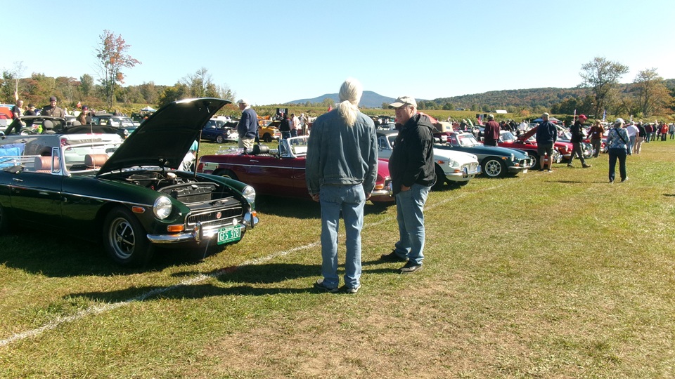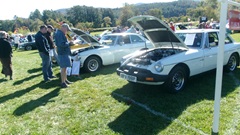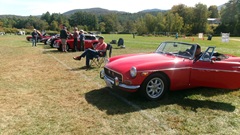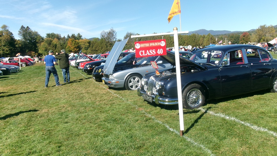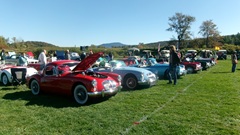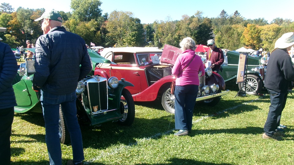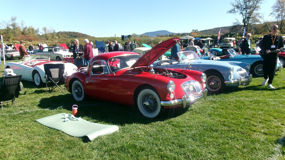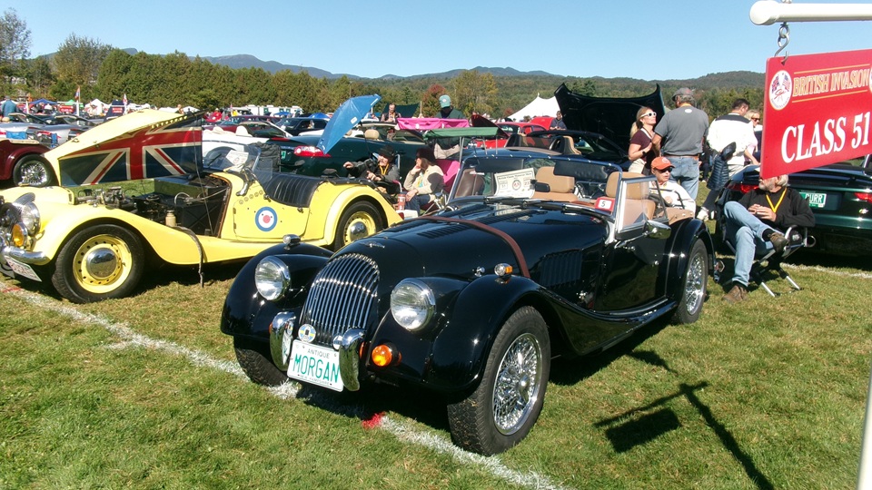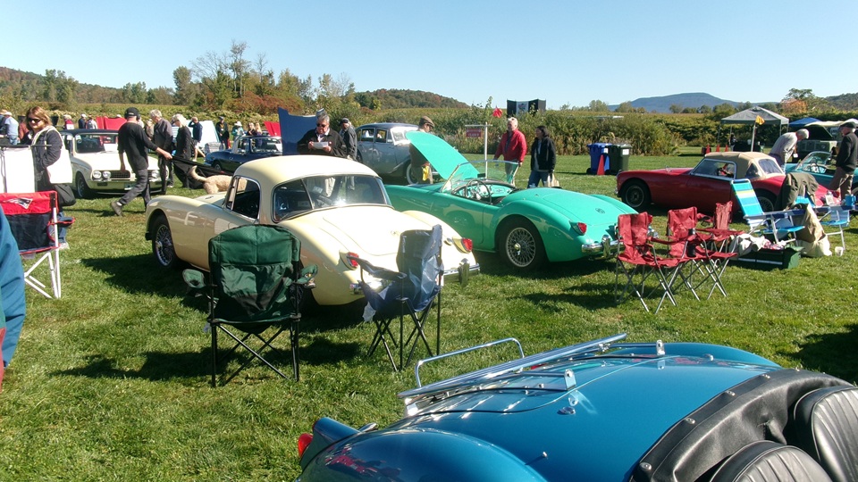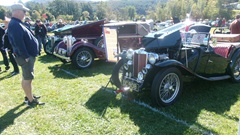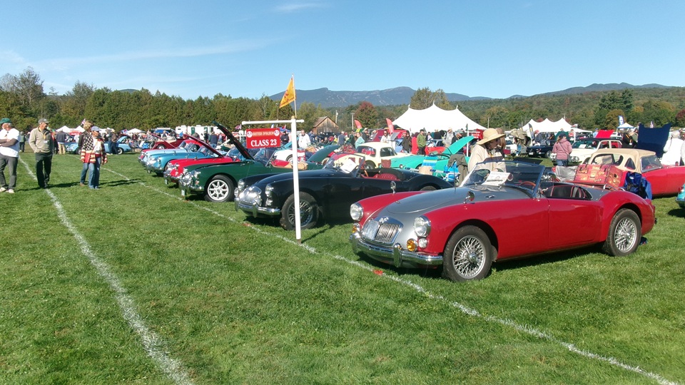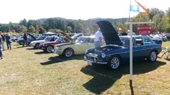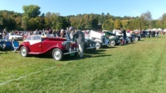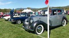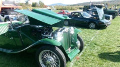 Breakfast in Morrisville, VT, then 10-miles south back to Stowe, VT for the car show. We had registration number 202, filed a month ago, so maybe 300 or so British cars present today (not counting a couple hundred visitor cars parked in the next field). After getting parked in the right line, next business was to walk around nearly two hours taking pictures of the show cars, mostly in small groups. Starting with MGA, see if you can count them, I'm not counting.