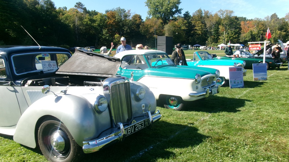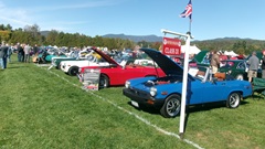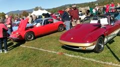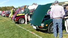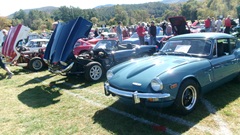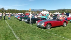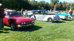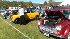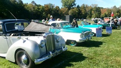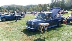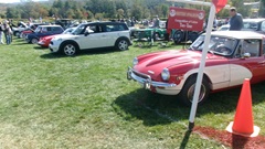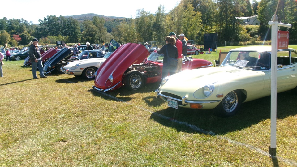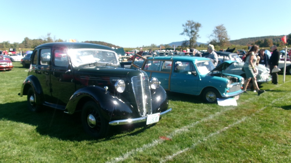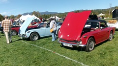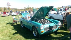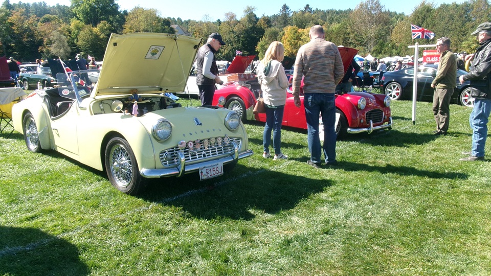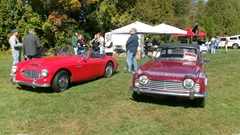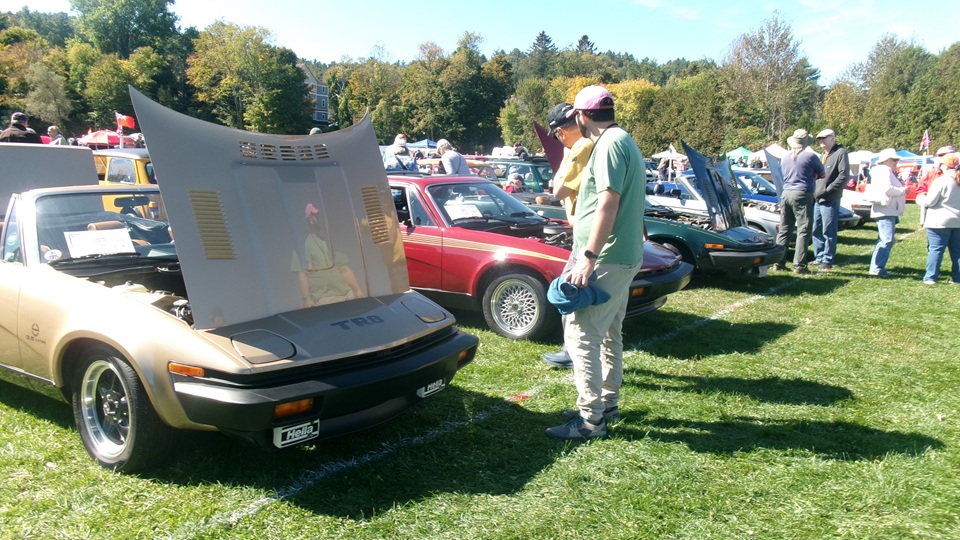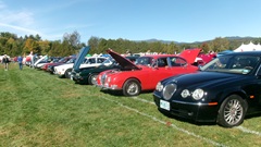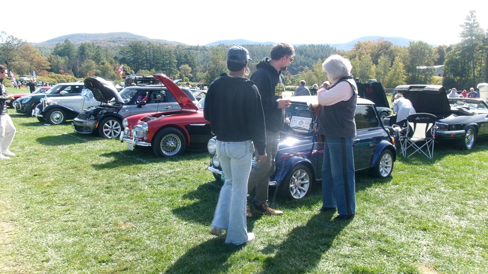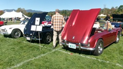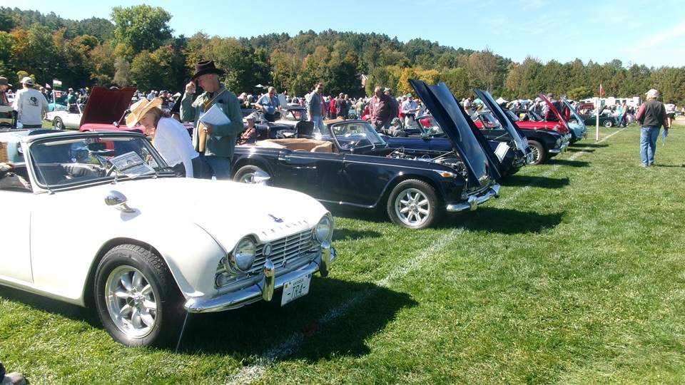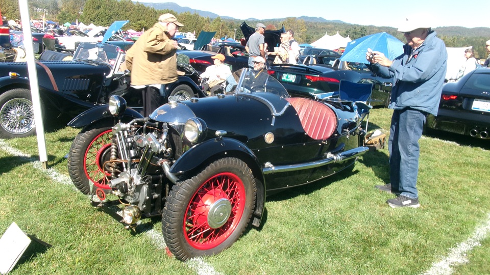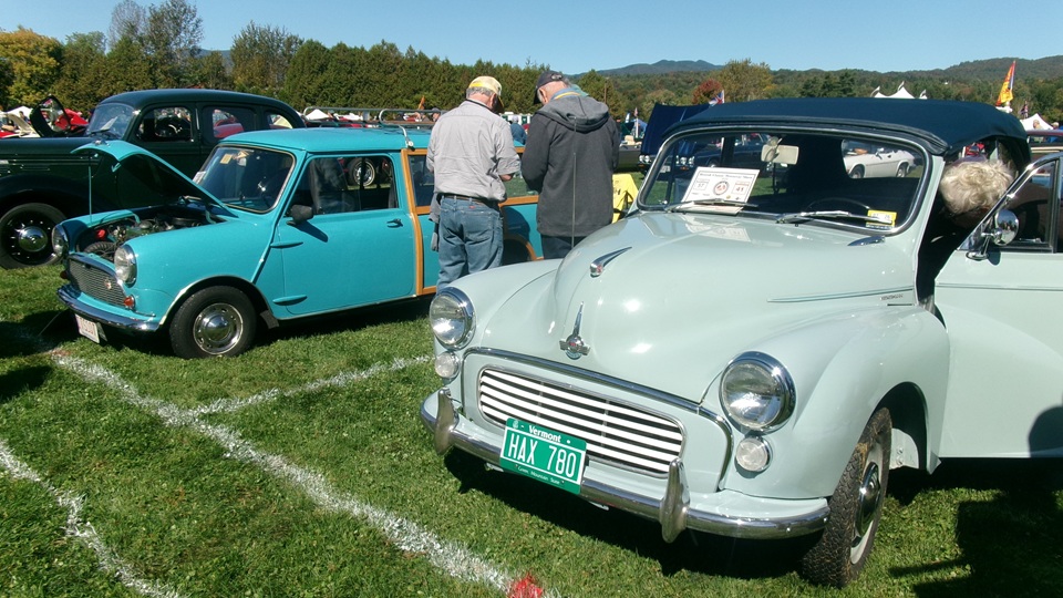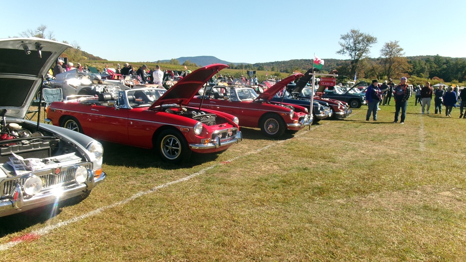 Breakfast in Morrisville, VT, then 10-miles south back to Stowe, VT for the car show. We had registration number 202, filed a month ago, so maybe 300 or so British cars present today (not counting a couple hundred visitor cars parked in the next field). After getting parked in the right line, next business was to walk around nearly two hours taking pictures of the show cars, mostly in small groups. Starting with MGA, see if you can count them, I'm not counting.
