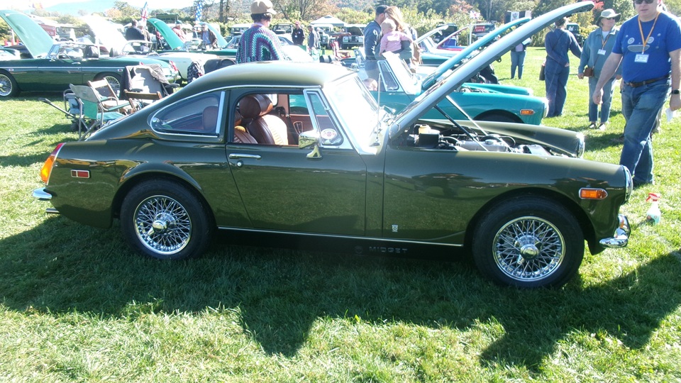 This MG Midget was sporting an unusual bolt-on fast-back hatch hard top.