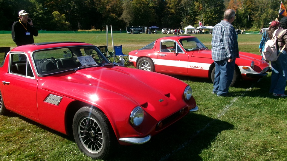 Here is a Jensen Healey, a pair of Jensen Interceptor, two TVR 280i, a 1971 TVR Vixen 2500, and a 1980 TVR Taimar.