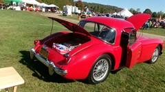 With some time to spare while the show cars were rolling back in for the color show, it was a good opportunity to check out a very nicely restored MGA 1500 Coupe for sale in the Car Coral. -- The story is, the car was nicely restored, finishing about 2001 with only minor detailing incomplete. It was then parked until 2018 when the current owner bought it. He did some cleaning and buffing to finish it nicely (may have paid a pro shop for some of the detailing work). It has only been driven a few thousand miles in the past 7 years, and has been well cared for, so it still shows nicely today. -- In case someone wants to do the expedient thing, and buy one that has already been restored, this is your chance.