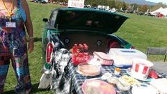 And there was a Tail Gate Party going on with awards for Best Presentation, Best food, Best Theme, and I don't recall what else, but the fried chicken and pumpkin pie were good. I think there were four Tail Gate set-ups, and for sure they all got a ribbon for something of a noble cause, all jolly good fun.