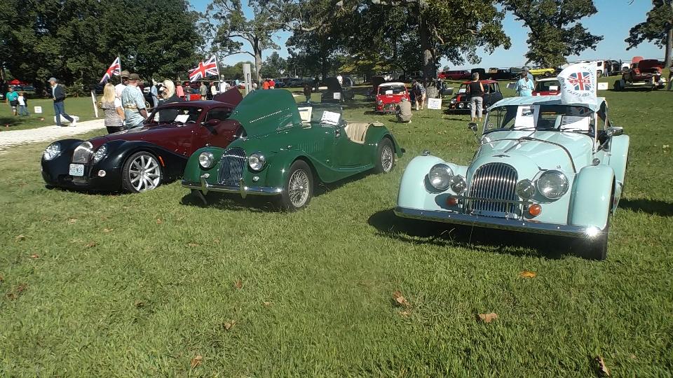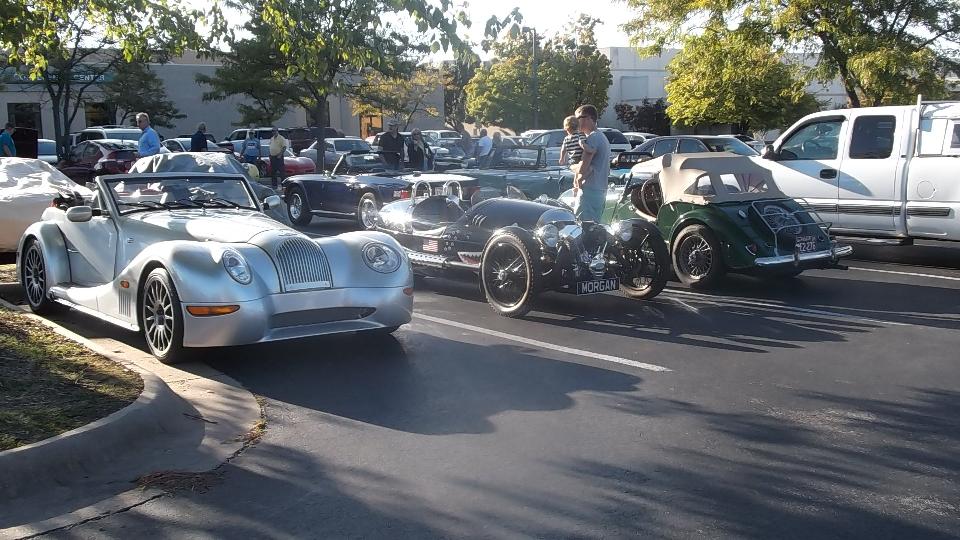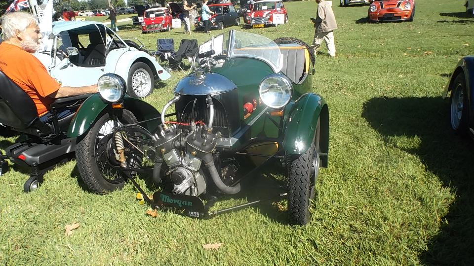 Followed by Morgans. The center picture is a new Morgan 3, ordered in 2012, delivered in December 2014, registered as a 2012 model even though it is now less than a year old. Car on right is an original 1935 Morgan Super Sport.