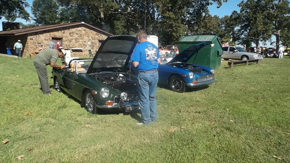 Today we arrived in Springdale, Arkansas to meet British Iron Touring Club of NW Arkansas in preparation for Brits In The Ozarks car show tomorrow. This was going to be fun. First to the registration table to check in and collect the goodies packet. Then the first step outside I bumped into Bob Nogueira from Dallas, Texas, long time no see. This fellow was traveling with us for the Alaska trip in 1997. He said when he heard I would be here he had to come. This is very good, because I could not find his contact information when I was in Texas in March.