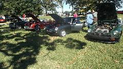 For the tail gate party there was lots of barbecue chicken, baked beans, potato salad and other sides, a table full of deserts, a table full of wine, and coolers full of beer and soft drinks. During and after stuffing ourselves there were a few tire kicking tech sessions. This one "cheater" MG Midget with turbocharged twin cam engine looks like fun, until it was reported to have been ticketed for doing 130-mph. Oops.