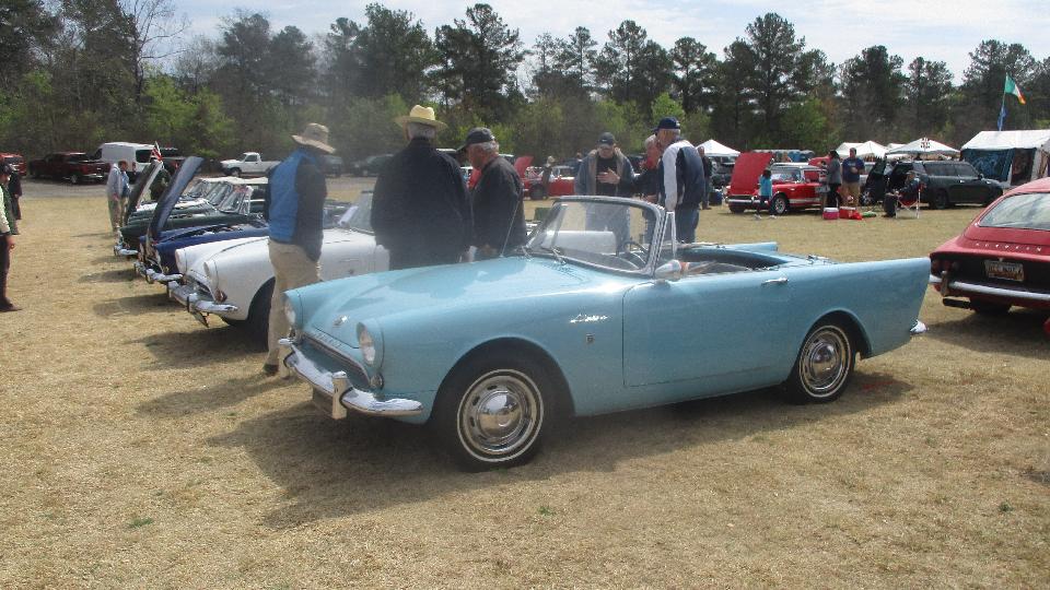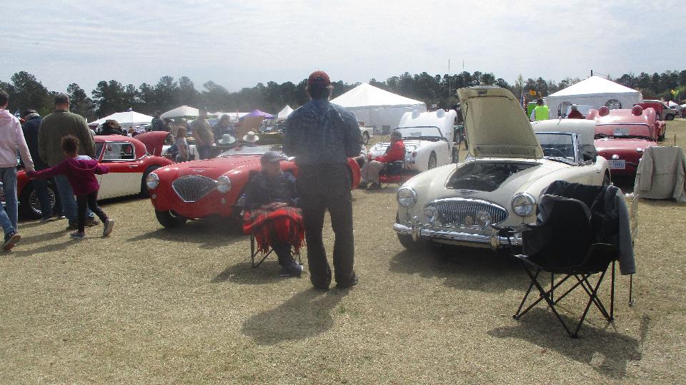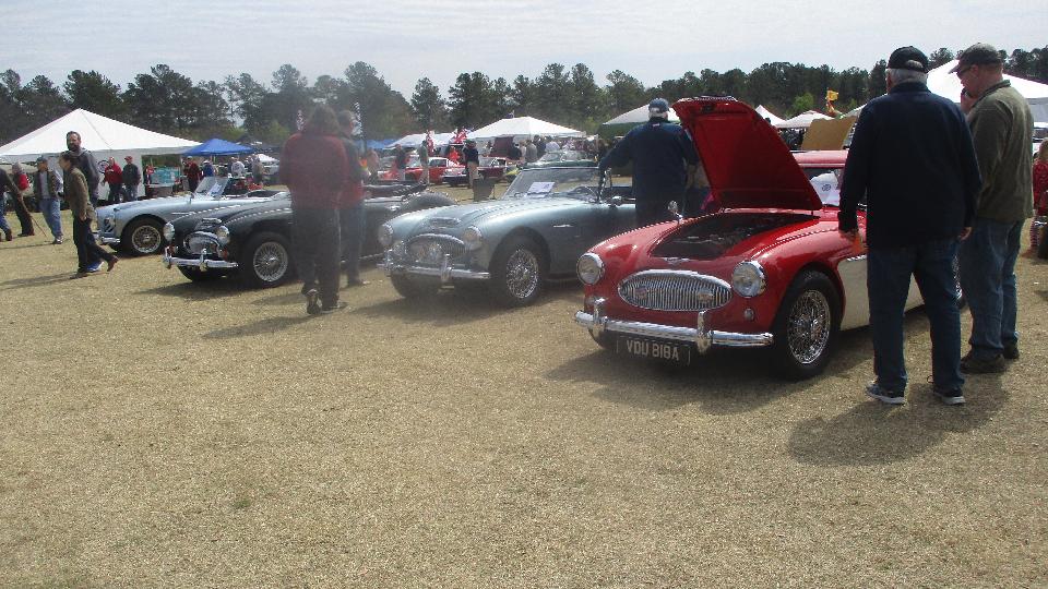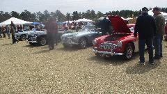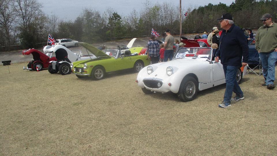 One Austin Healey 100, at east four AH 3000, and I think one AH 100-6 on the end of the line. Three AH Bug eye Sprites and one MG Midget (no flat bonnet Sprites).