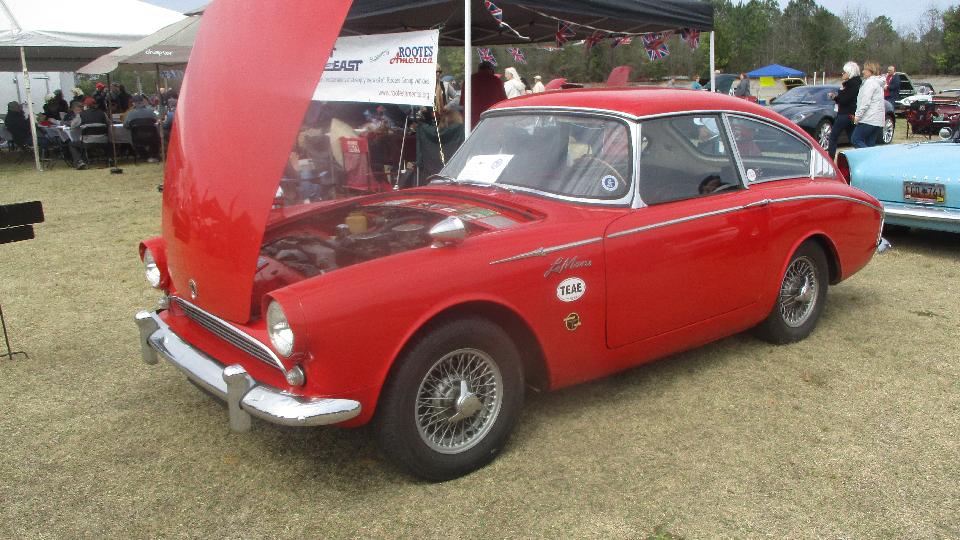 There were a surprising number of Sunbeam Alpine, including one early issue with the tall sharp tail fins.