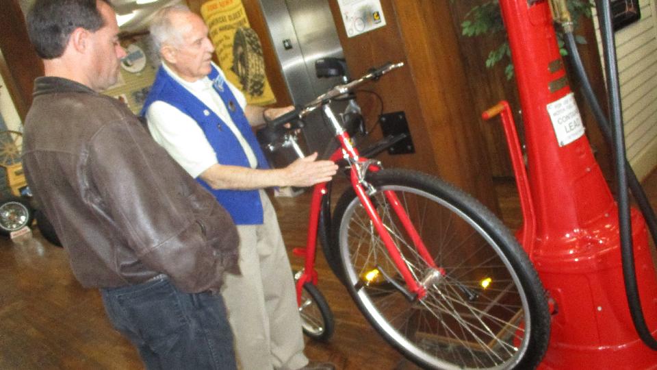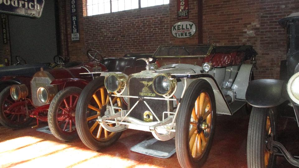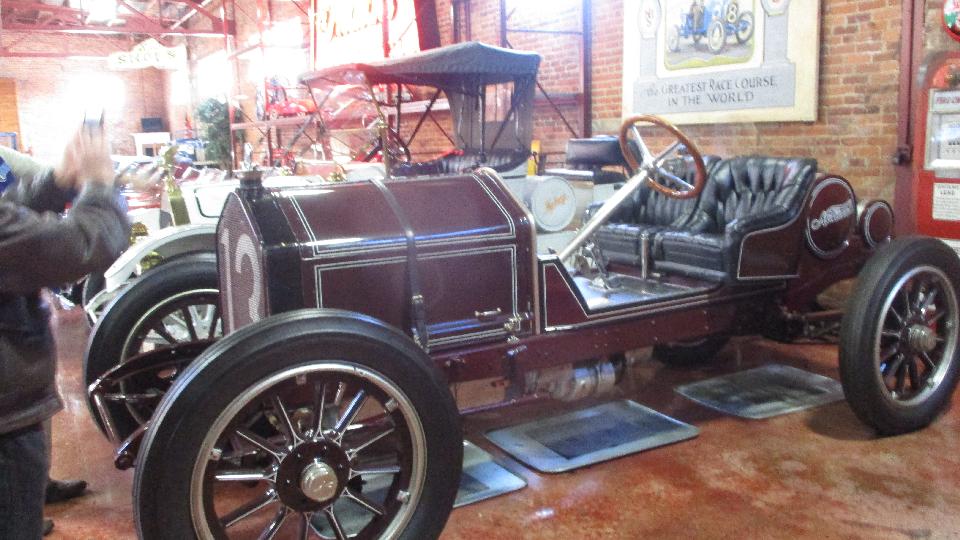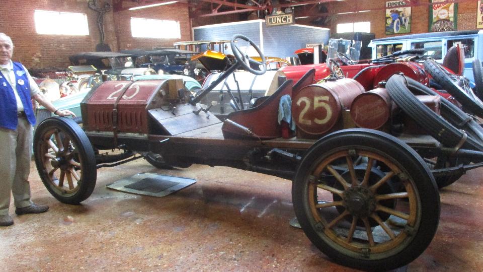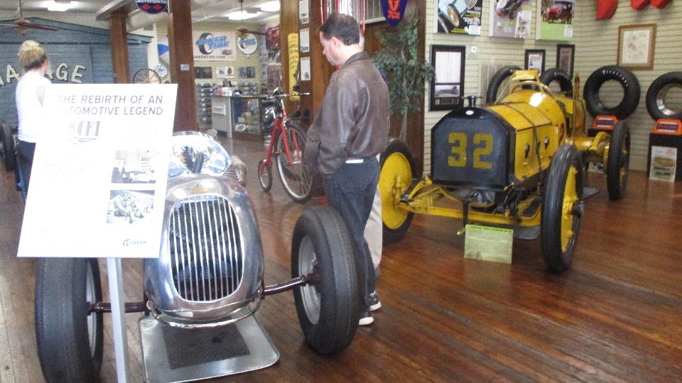 Coker is into a lot of vintage things including manufacturing high-wheeler bicycles. They may be manufacturing the only 36-inch bicycle wheels and tires to match. The Thomas Flyer was one of the first cars to pass in the museum, this one having "graduated from 4-cylinders to 6-cylinders.