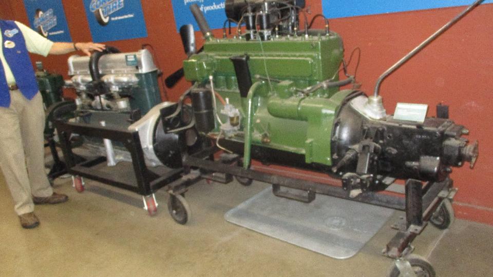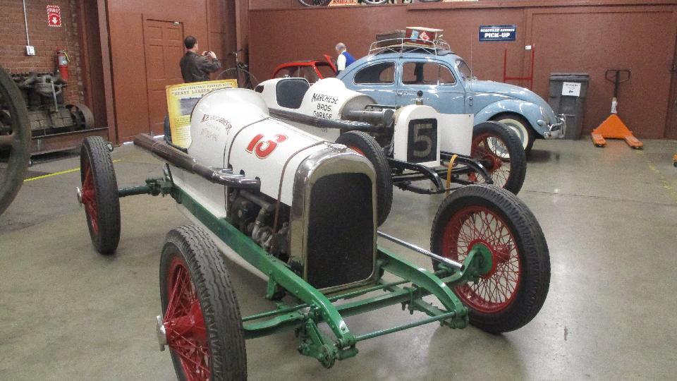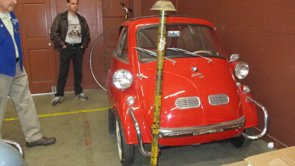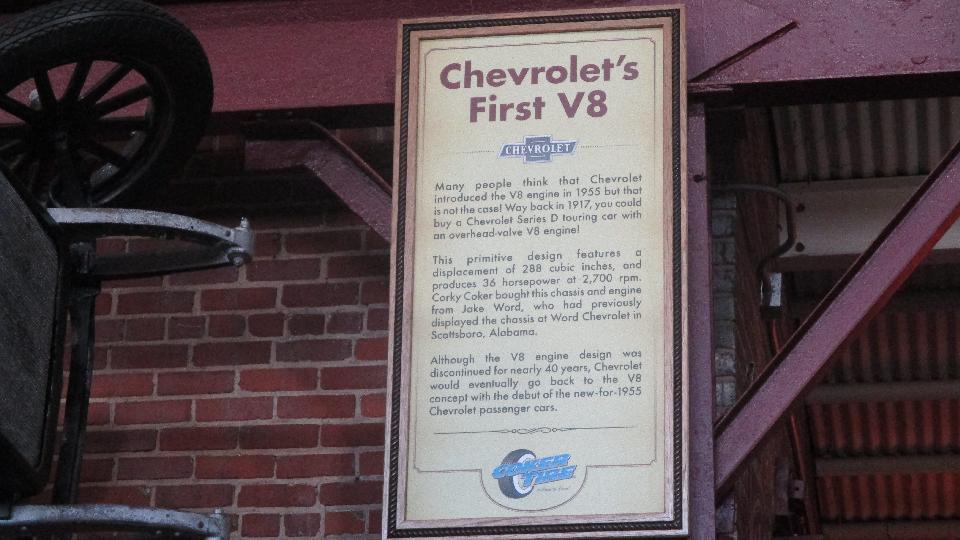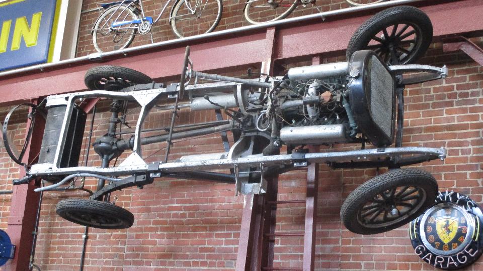 I have not seen this many early vintage cars in one place before. The blue VW Beetle is a special 20th anniversary edition. The Isetta (300 cc engine) is one of the earliest (sporting front bumpers for the American market). The large chassis on the wall is a 1917 Chevrolet V8. Too far ahead of its time, too big and too expensive (several times more expensive than the mass produced Fords of the era), it didn't sell well and was soon discontinued. When re-introduced in 1955 the engine was not changed much.