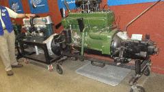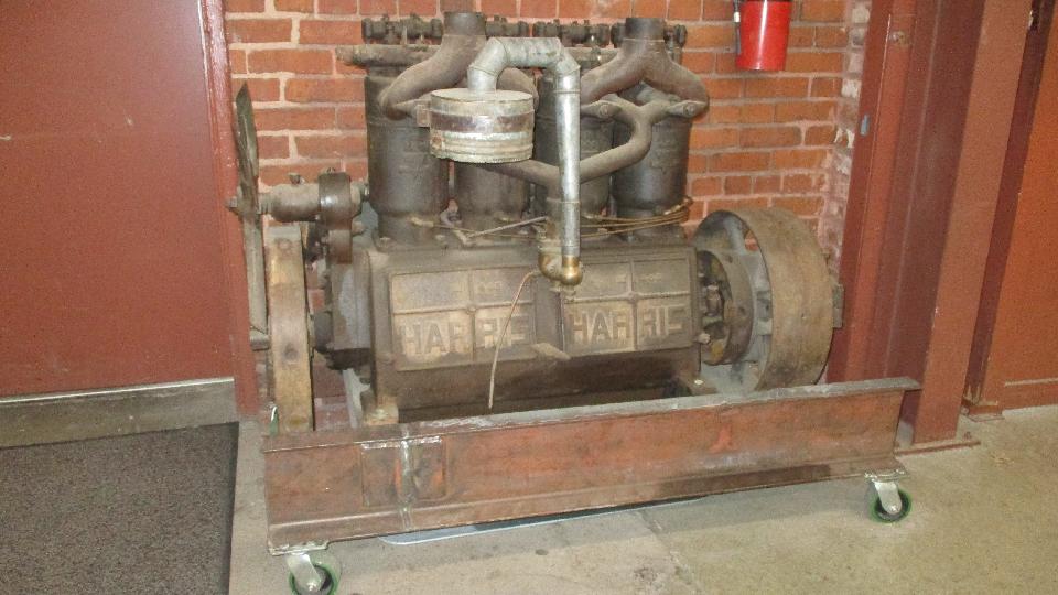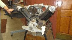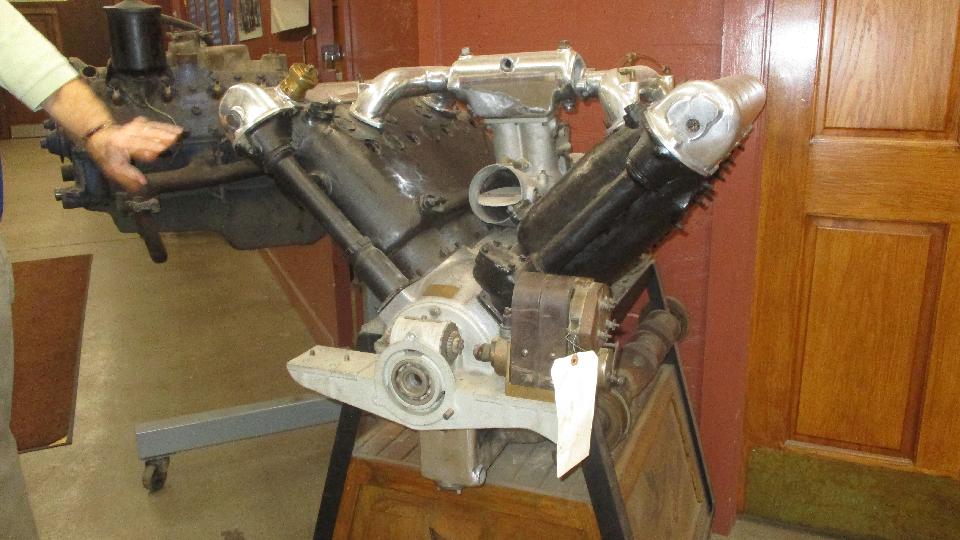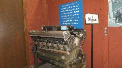 Below left is an early V8 airplane engine, missing most of the peripheral parts. I suppose the big green thing was probably a truck or bus engine. I don't remember the story, but the V12 overhead cam beast was petty impressive considering the era.