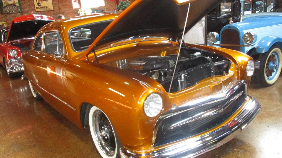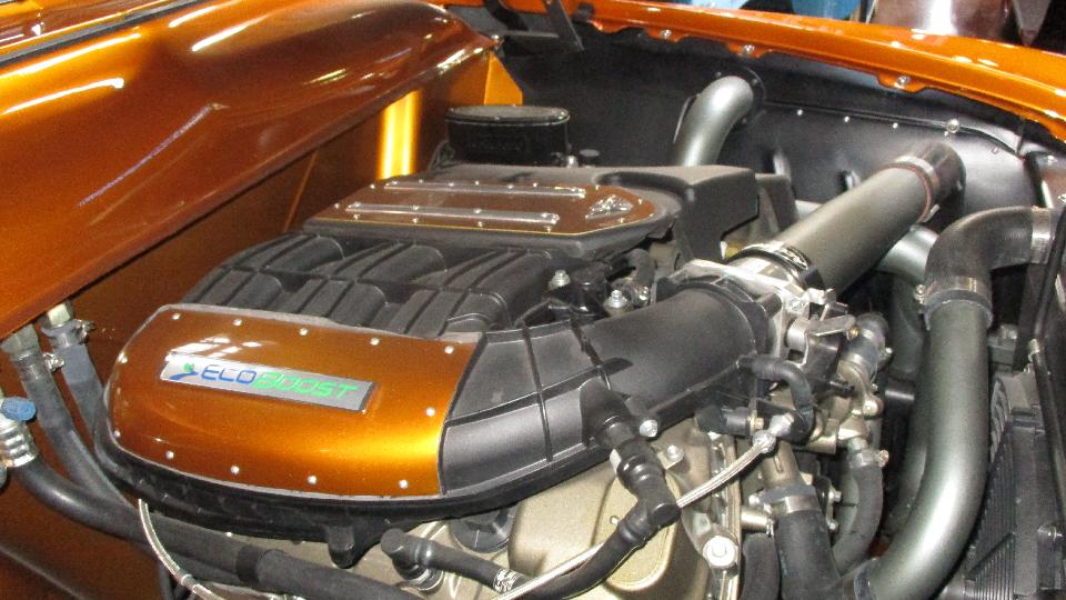 The green roadster is more than may first appear. Independent front suspension, disc brakes, and a modern engine that could surprise anyone. The '51 Ford is highly customized and rodded, carrying a thoroughly modern Eco-Boost engine.