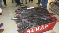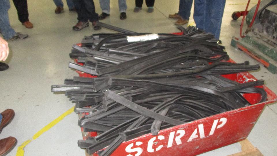 I took the picture of boxes of extruded seals before I realized it was scrap to be recycled. Then a machine to punch out flat rubber parts out of sheet stock, and a press brake for bending sheet stock, and a forming press.