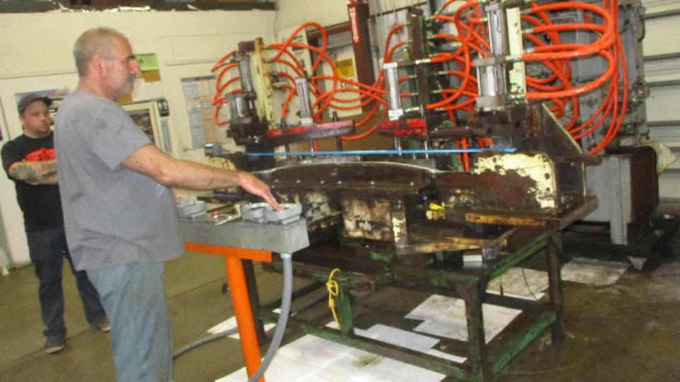 Then into the zinc and pot metal casting shop. This is where you get those nice die cast emblems that are commonly chrome plated, but they have to start off as rough castings.