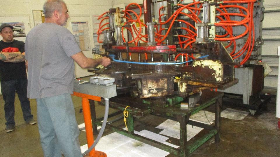 A multi-stage rubber molding machine (I think), and a variety of large capacity stamping machines.