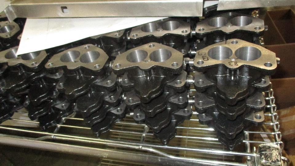 Here we have the magic of making carburetors for 1941 Fords. Part iron, part pot metal, lots of deburring and NC machining and dozens of little holes. After cleaning and assembly every carburetor is fueled up and run on an engine for testing and adjustment, then drained of fuel and blown out dry before packaging.