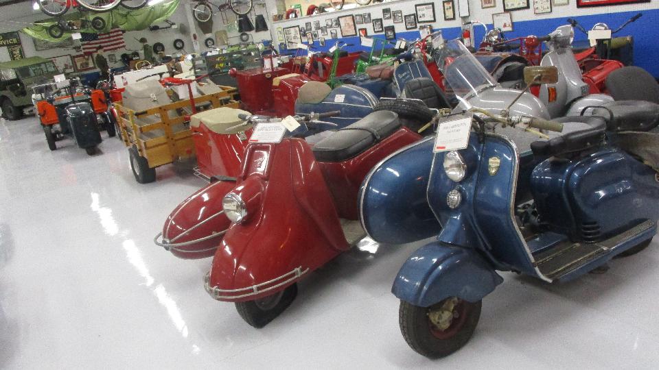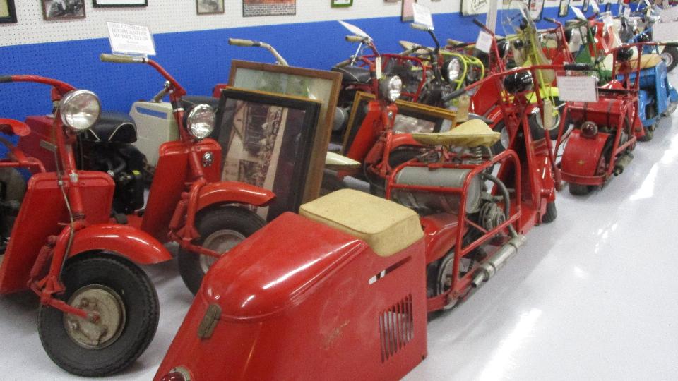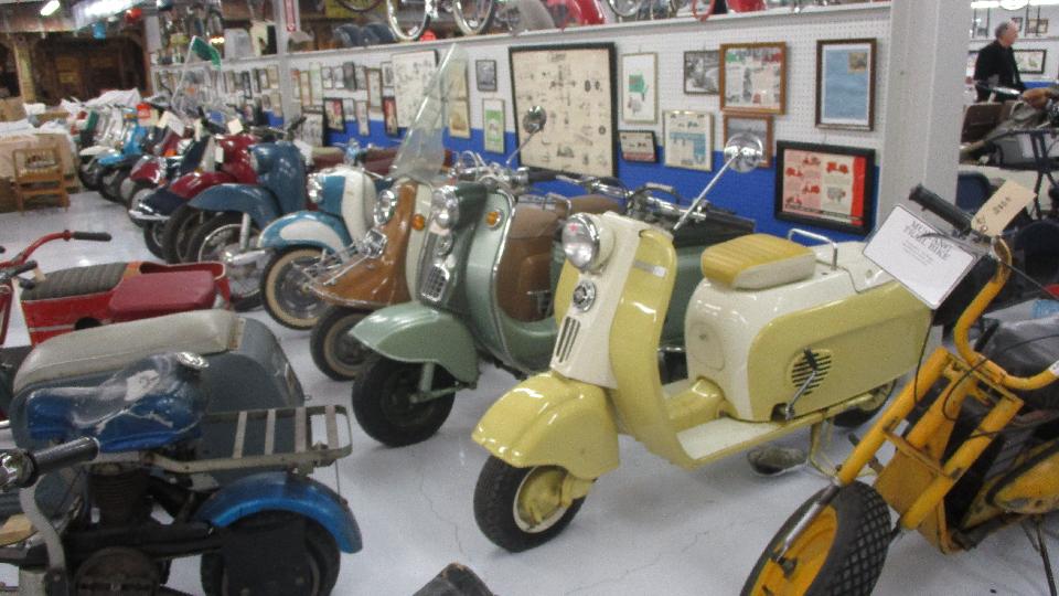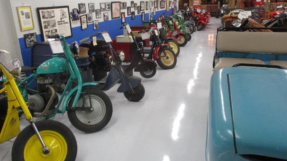 The Cushman Scooter collection is on the second floor above the museum. Seems like there must be one of every Cushman scooter ever produced, including Cushman passenger trailer and some utility trucks.