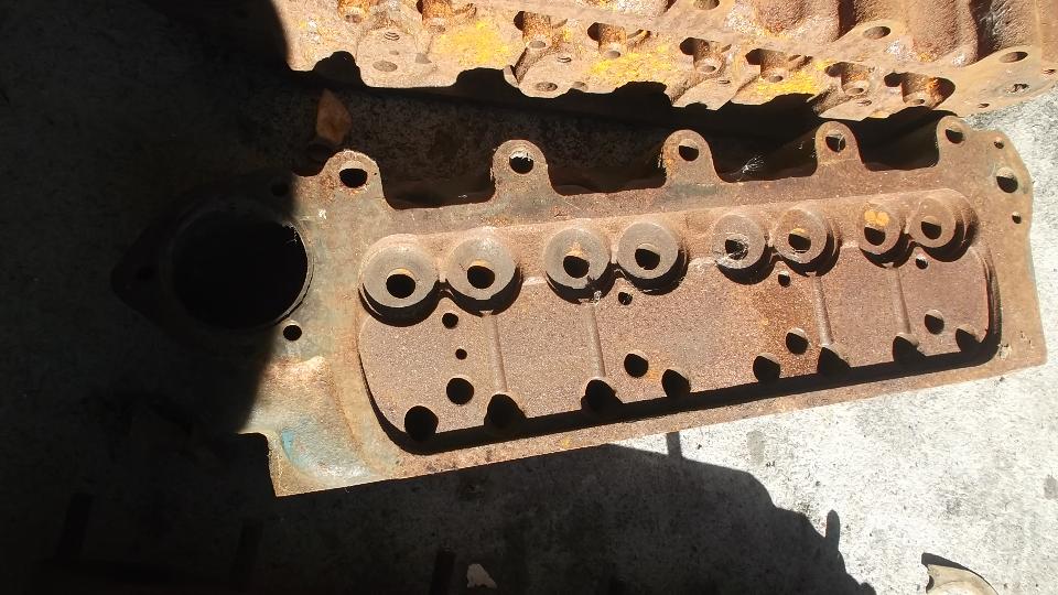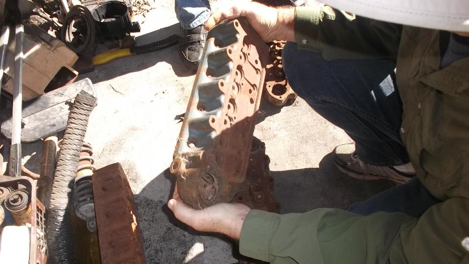 What we have below is an Austin A-series cylinder head (MG Midget or AH Sprite) that has undergone extensive machining to lower the height of the rocker shaft assembly. No one knows why. There is another head that has been sliced and diced to reveal internal structure of the casting, apparently to aid in shaving, porting and polishing of heads for racing engines.