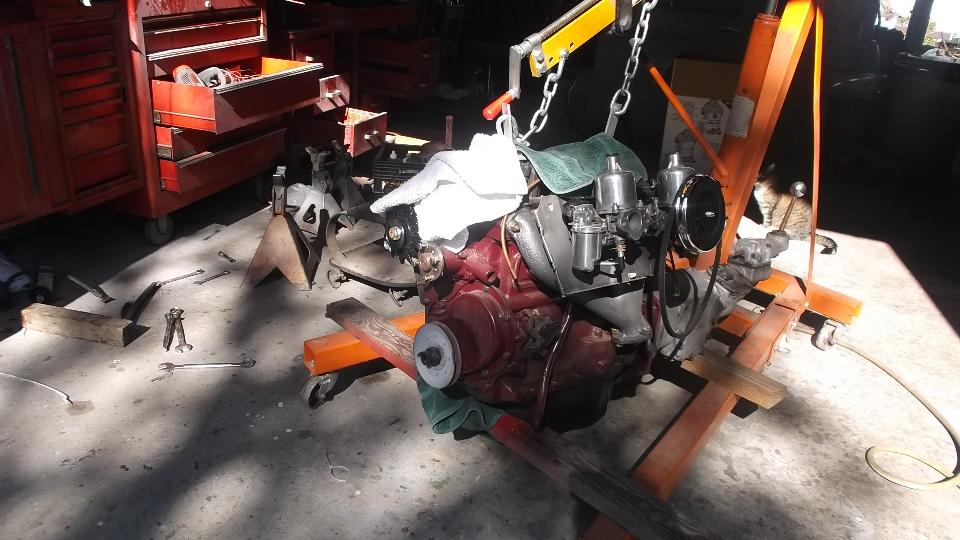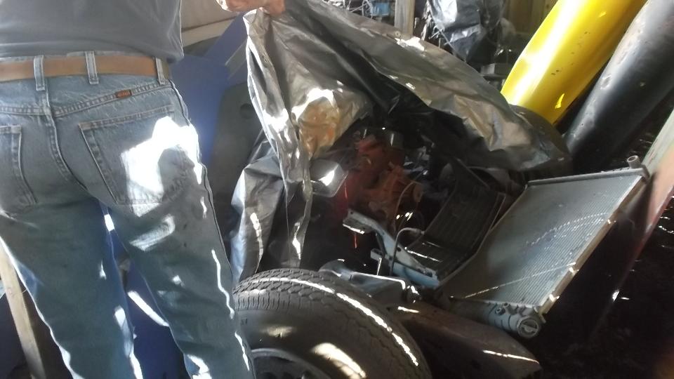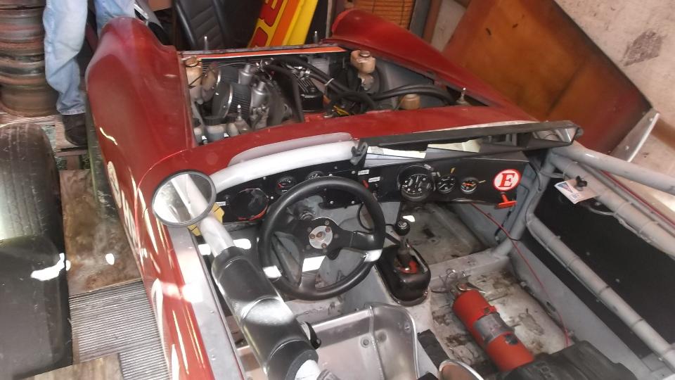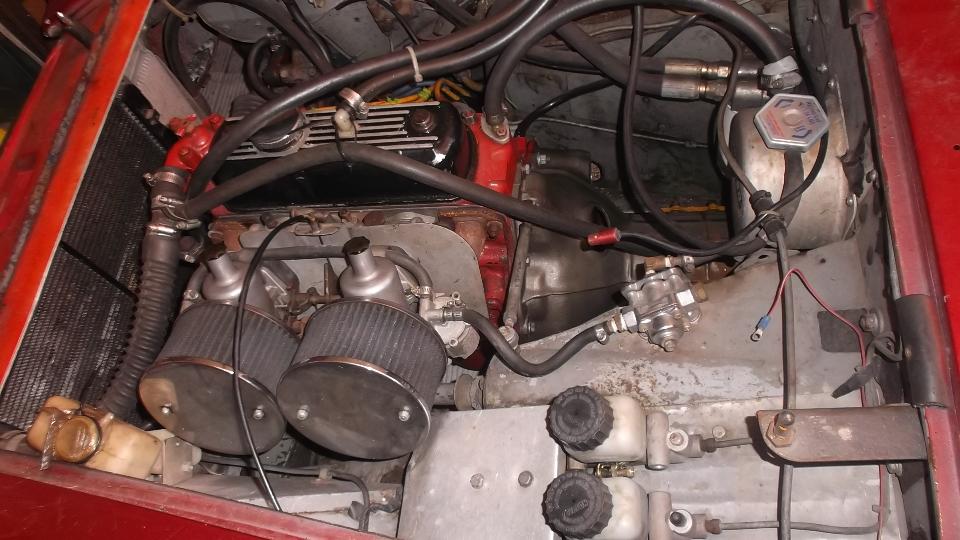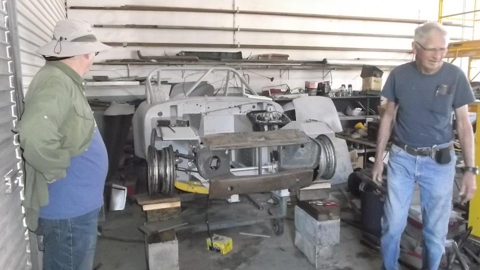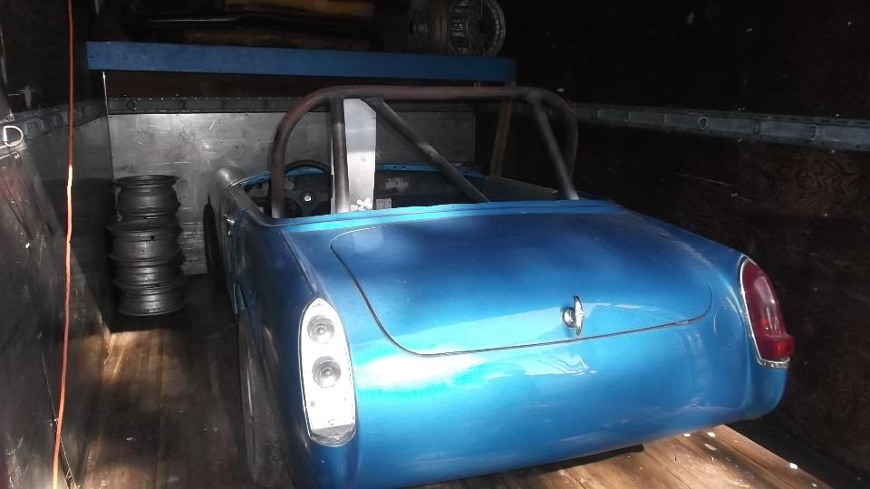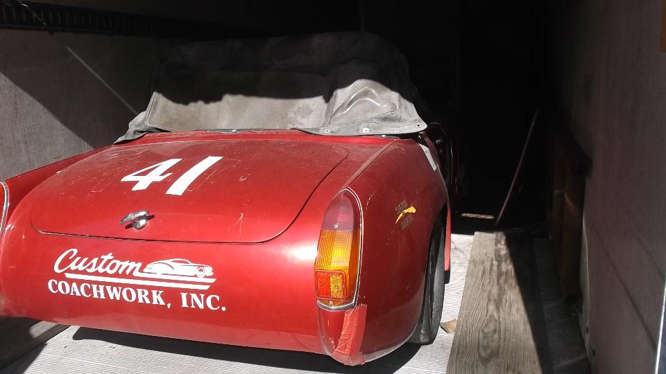 How about an MG Midget being prep'd for racing? I like the brake equalizer set up.