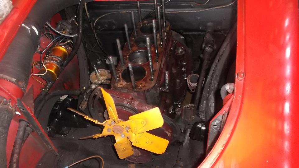 Late night and early morning phone calls landed a willing machine shop in Chesapeake,VA. Diligently trying to beat the weekend with the machining work required. All about critical path planning and best use of the time and resources available. No time to take pictures. Morning job was final lift of engine from chassis, total disassembly to bare block, and cleaning of the block (and myself). Then picked up a rental car (about 1:30-PM and made a dash from Kill Devil Hills NC to Petersburg, VA, to pick up parts at Moss Motors before 4:30 PM closing (151 miles).
