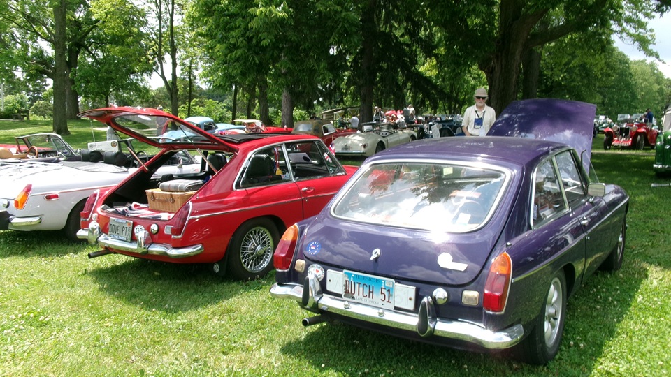 At least six MGB present, but the dark blue GT first in line is an MGC.