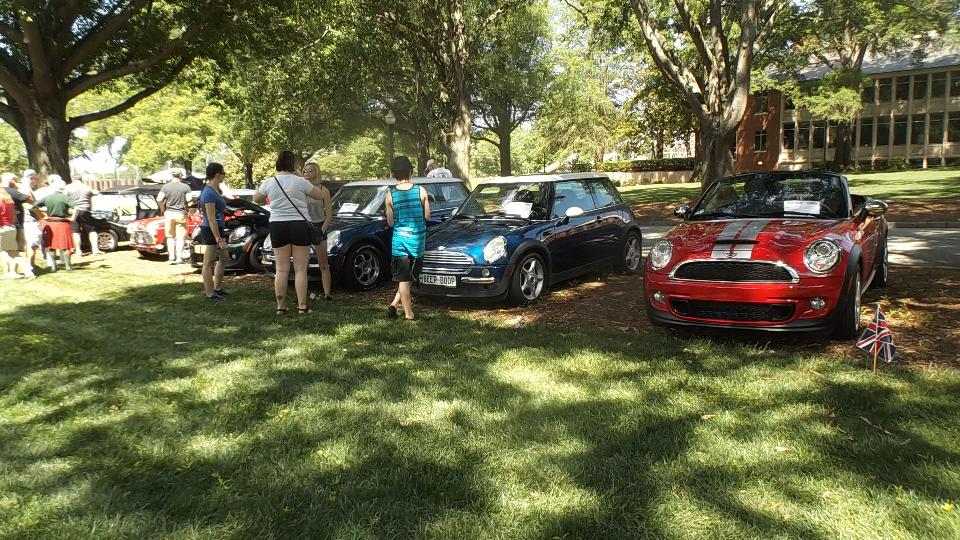 We got to the car show today, beginning with hook up with British Car Club of Western North Carolina in Flat Rock, NC. About 14 cars caravanned 30 miles south to Furman University in Greenville, SC.