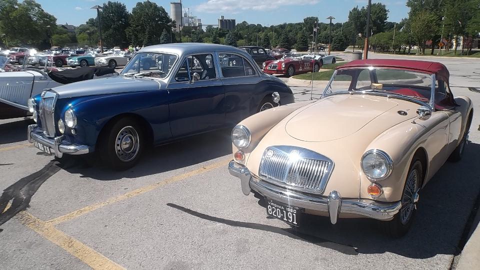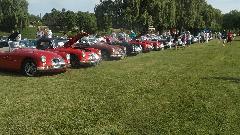 Here we have Gerard Geraci's MGA Twin Cam (first in class winner and a member of Chicagoland MG Club), the "Chickens 'R' Us" special (which took 3rd place in the MGA 1500 Wire Wheel class). and the seldom seen MGA in Alamo Beige paint (odd factory color).