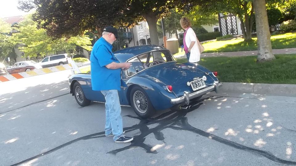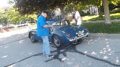 Then I stuck my nose into the Rolling Tech Session where John Twist works his magic to fix problems on the cars. I couldn't count the number of times John was crawling under the front of an MGA to check and set ignition timing with a strobe light. I managed to be a little helpful a few times (more than I interfered, I hope). When John broke a screw while adjusting a carburetor, I magically pulled a #4-BA screw out of my pocket to fix it. I don't profess to work miracles, but occasionally I can take advantage of the odd coincidence.