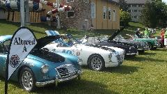 The Mineral Blue MGA Coupe was fortunate enough to find the only shade in the car park. The Parish Plastics hardtop for MGA was part of the event long Rowdies Raffle.