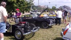 There was also an MGA with a Ford Duratec-R engine, very impressive. These can be tuned to well over 300-HP, although they start about half that in low-end production form. One picture and one space left, so say hello to Jeff Zorn, sitting the shade to hawk his wares at the car show.