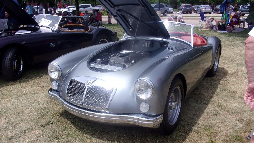 I started taking pictures in the back row with "Altered" cars and "Other" (not MGA). Already seen the 4-door MGB and the Devin MGA. There was an MGF here, now that some are more than 25 years on and becoming legal to import. The GM V6 MGA rolling chassis in process was here, followed by a Rover V8 MGA (fairly well done, not butchered), and a GM V6 MGA quite nicely done. The MG TD was a knock-out, destined for a trophy today. The 1936 MG PB Airline Coupe was immaculate (and for sale).