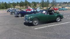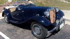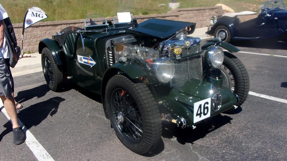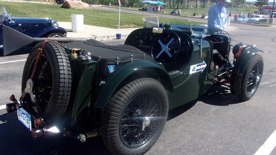 Sneaking up on the vintage cars, some more vintage than others. Pretty sure that's a MG TD on the right.