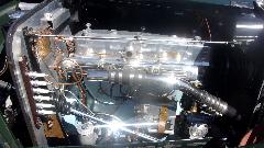 Then the Modified class cars. At right has a Duretec 2-liter engine, a little over 200-BHP. Below is a 3.4-liter 60-degree V6 with a 4-bbl carburetor. The air cleaner is a bit deceptive, as the engine is quite small, so it drops right into the MGA without cutting the frame braces.