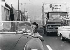 "The smog isn t quite as bad as Fernie Payan, 24, makes it seem, but he caused quite a stir driving about the city on Oct. 29, 1965 wearing this gas mask. Los Angeles was suffering through its third straight 'smog alert' in three days. ....Press photo from an unknown newspaper."