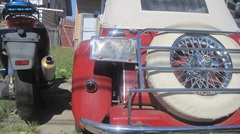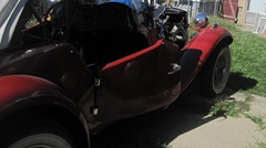 Missing the bonnet assembly, owner says he has it, but it doesn't fit. We didn't see it, couldn't try it, take his word for it now. The engine is something Mitsubishi, possibly from a Dodge Colt. Not fuel injected, some downdraft carburetor I have not seen before Missing both running boards, none available. The car was repainted some time past, and it looks like the running boards were never installed after painting. Wire