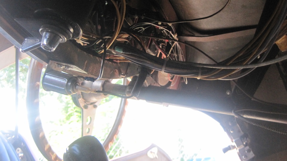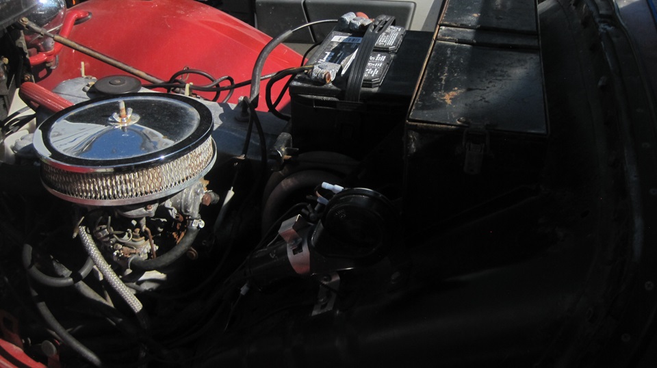 Under dash, factory style optional turn signal switch. Face of dash looks mostly normal, I think. Picture of the mismatched air cleaner near the smaller carburetor.