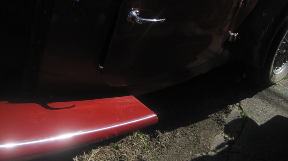 Back to body work, the dog leg area in front of the LR wheel, with no running board. Looks like Bondo, never finished, painted over, thinking the running board should cover it?