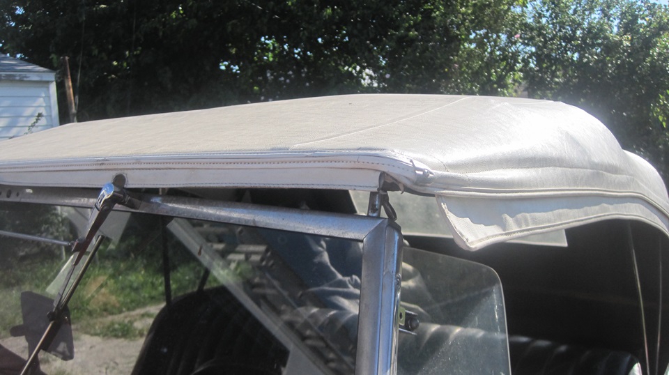 The doors strike me as typical fit for an old TD. Loose fitting latches that will latch if you hold the front end of the door at correct height and slam it. Hinges have loose fitting hinge pins, especially the top hinge that allows the door to sag, although the hinge brackets do appear to be secure on the B-posts. There is a bungee cord present that appears to be positioned to clip onto the exterior door handles to prevent doors from popping open.
