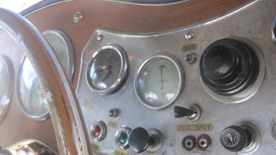 wheels are not original to the TD, guessing the rear axle might be MGA or early MGB banjo type axle, but not sure of origin. Front drum brakes look like original TD parts, while the wire wheel splined hubs might be MGA parts. Tires are 5.60-15 4-ply nylon bias ply tubeless tires, and pretty sure they are too old to have a date stamp, something out of the 70's maybe.