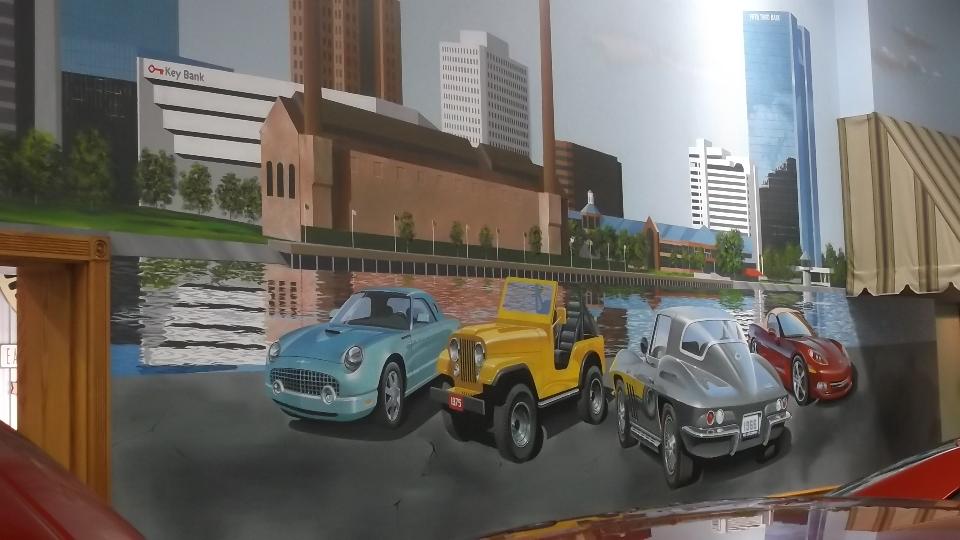 we found a place called "Nice Car Company". Nice cars, about 120 all modern stuff inside of large buildings, so nothing to write home about. But they did have a nice mural painted on one wall inside, which may have something to do with origin of the company in the late 1970's.