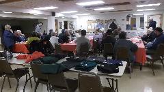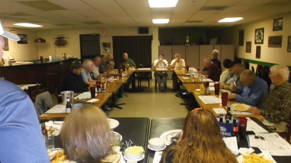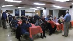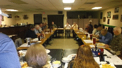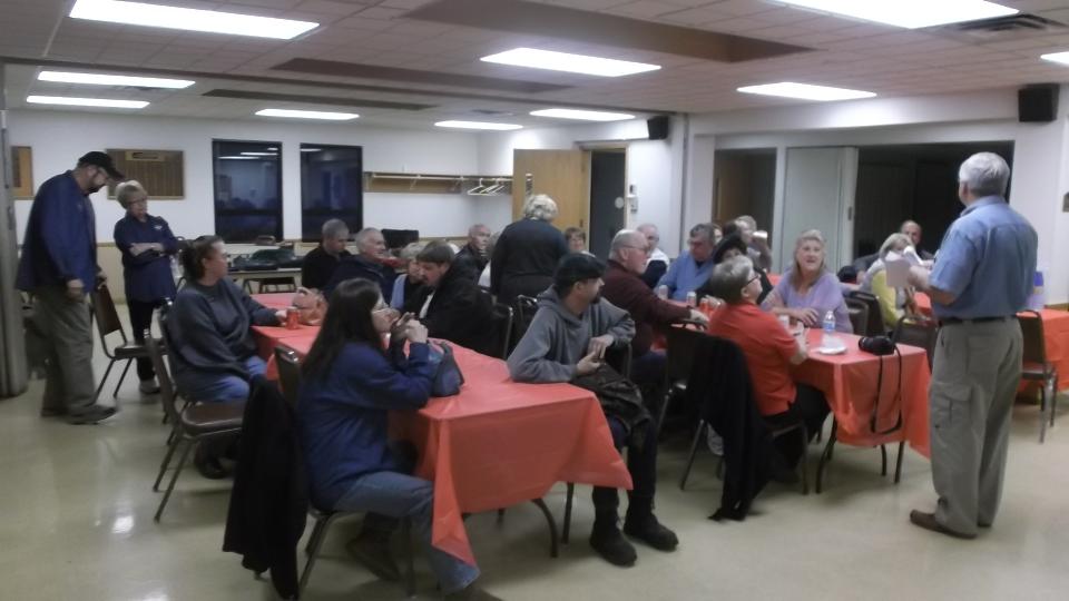The post-rally meeting looks a lot like the pre-rally meeting, except now we're all eating desert while trying to kill the rallymaster. But the people are friendly, and it was still jolly good fun in spite of the problems. One MGA in the parking lot needs a push start due to low battery (after running two hours at low speed with lights on), so that may be our next appointment for tomorrow.