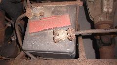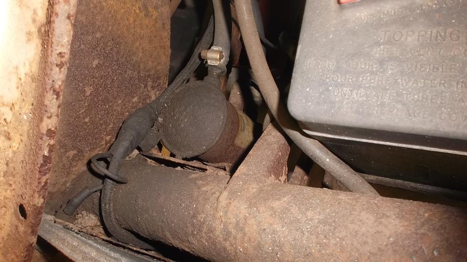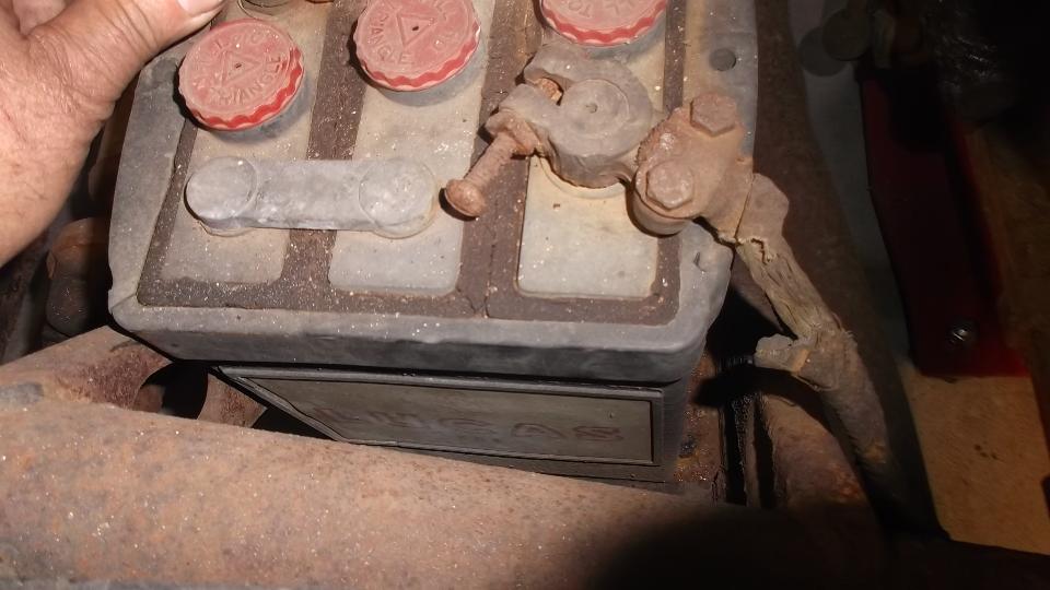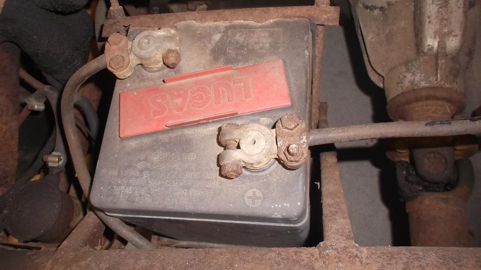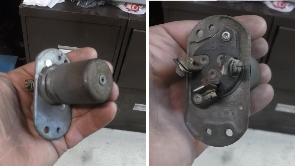 Two Lucas batteries, very vintage, and very dead. The fuel pump looks familiar, but I can't quite place it.